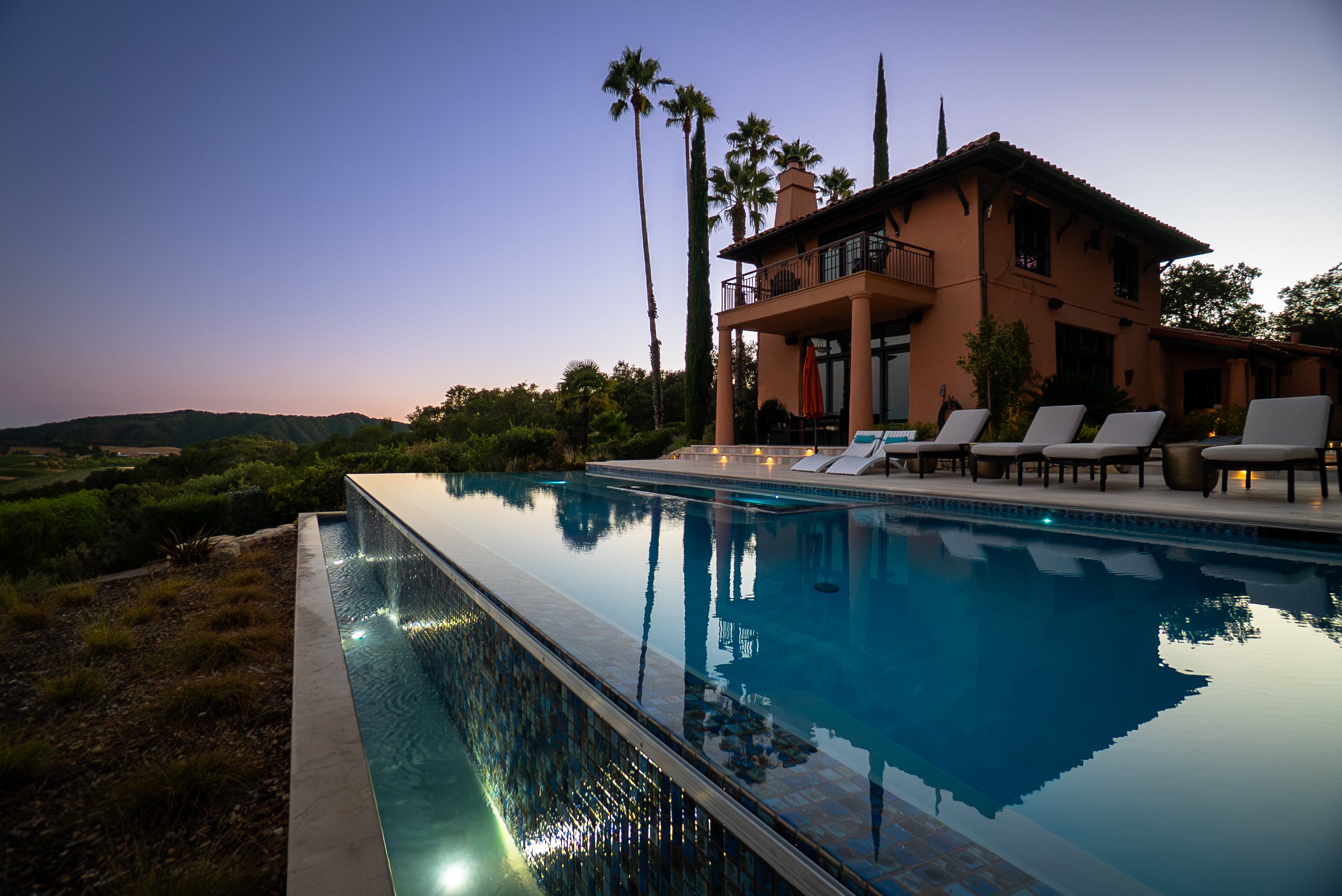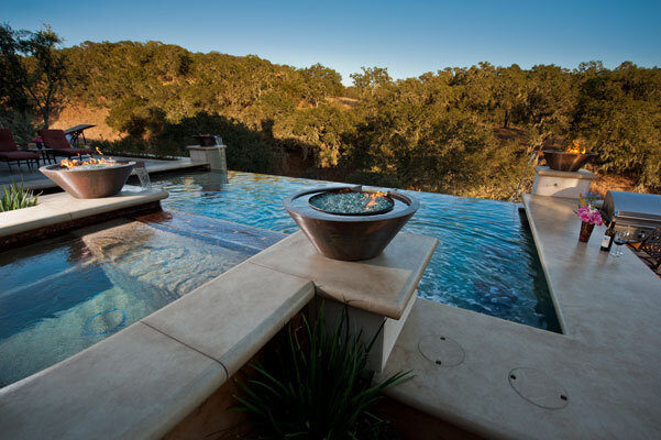 We build a wide variety of pools, including negative edge pools, free form pools, lagoon style pools, beach entry pools, pools with tanning shelves and umbrella sleeves, rectangular pools with covers, swim up bars, and a variety of natural and synthetic stone water features, laminars, and sheer descents. We do a variety of pool finishes including all tile, pebble tec, pebble sheen, pebble fina and plaster. We also offer a variety of tile choices including glass tile, ceramic tile, and natural stone depending on the style of pool.