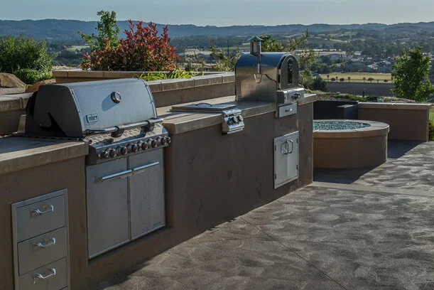 We install numerous types of outdoor kitchens and BBQ areas. Most of our kitchens are custom designed and built for your individual space. We use many different counter materials including granite slabs, natural stone tiles, and ceramic tile, depending on the style of home.