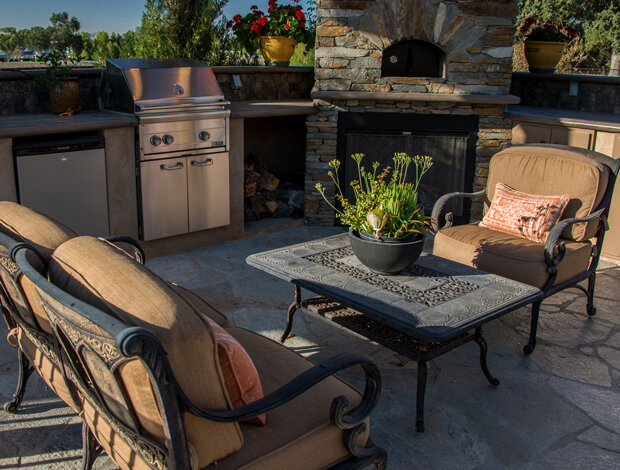 We also build custom pizza ovens and outdoor fireplaces. We try and use accent materials on these features that tie them into the landscape.